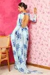 Blue Saree Organza Printed Blossom With Unstitched Blouse