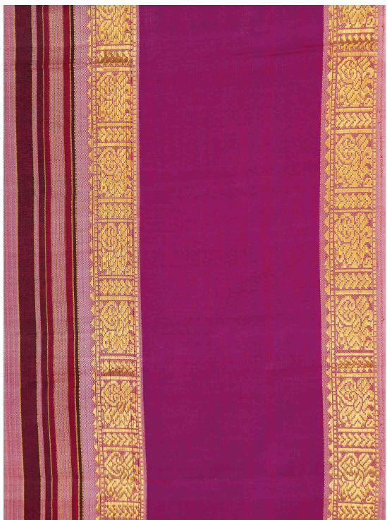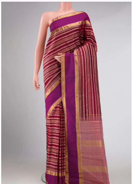 Multi Linen Saree with Stripes on the body and Zari Border. Includes unstitched blouse.