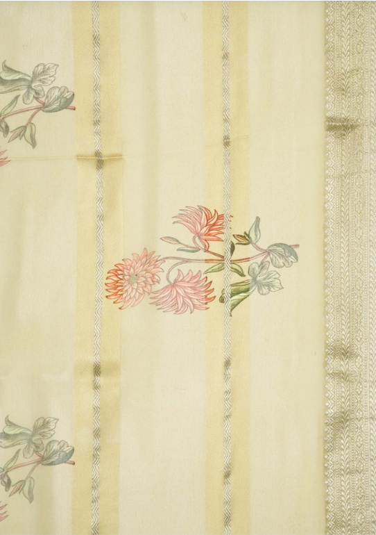 Yellow Georgette Saree with Stripes on the body and Zari Border. Includes unstitched blouse.