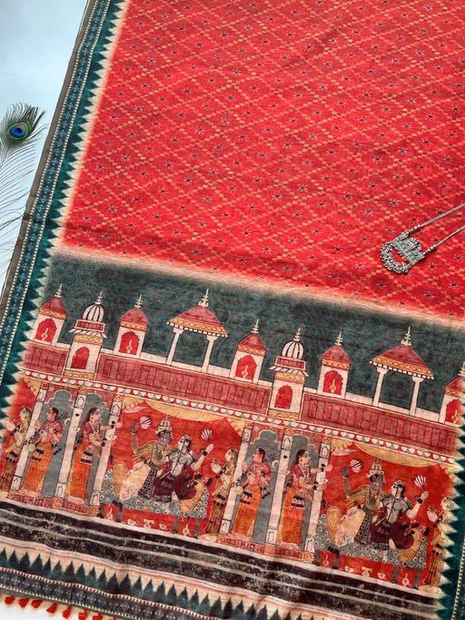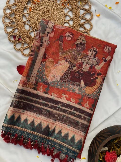 Introducing our exquisite Thaanvi Double Ikkat Saree! This saree is a true masterpiece, featuring a stunning double ikkat print with intricate digital detailing. The highlight? A breathtaking kalamkari-inspired pallu that adds an artistic flair to the ensemble. Complete with an unstitched blouse, this saree is a perfect blend of tradition and contemporary elegance.