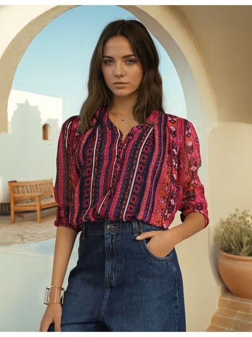 Upgrade your wardrobe with this v-neck top that goes well with both your evening and daytime casuals. Tailored to sartorial perfection from premium quality fabric, it assures a soft and soothing touch against the skin. The exquisite silhouette adds to its appeal.