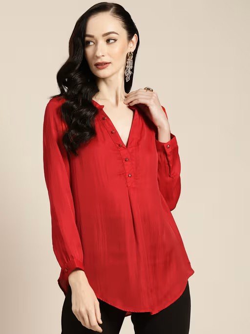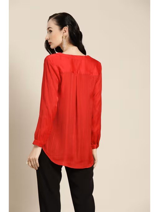 Red Silk Half Placket Top