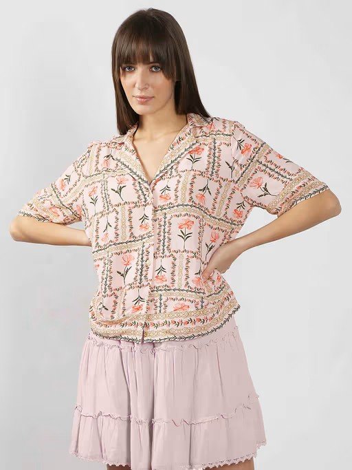 Effortlessly Chic, This Floral-Printed Shirt Features A Classic Notched Collar, A Front Button-Down Placket, and Breezy 3/4 Sleeves. Designed In A Relaxed Fit That Falls Below The Waist, It's Perfect for All-Day Comfort with A Touch Of Elegance.