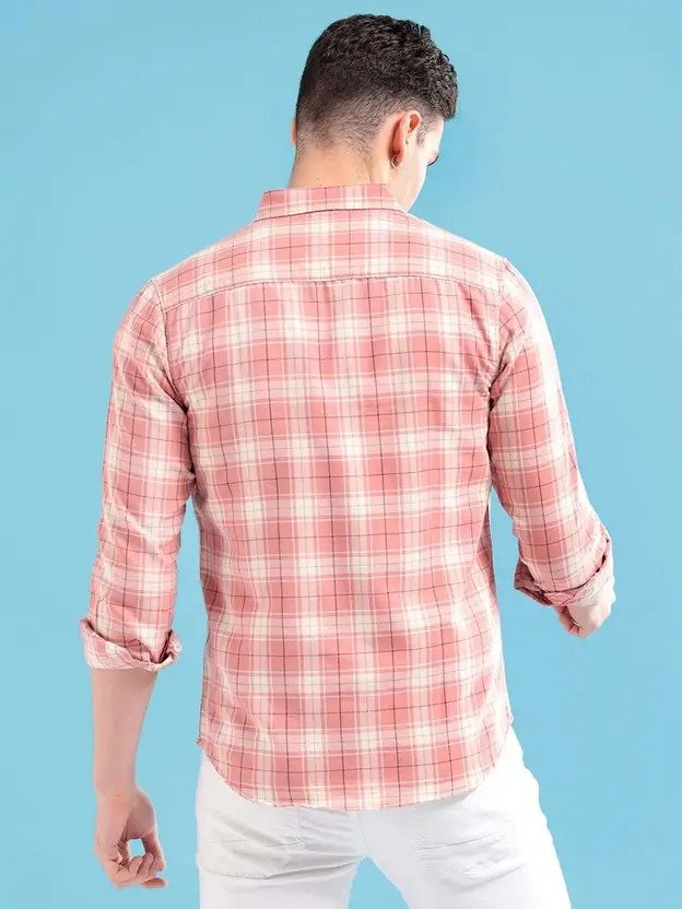 Men Slim Fit Checkered Spread Collar Casual Shirt