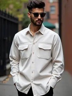 Men Boxy Fit Solid Spread Collar Party Shirt