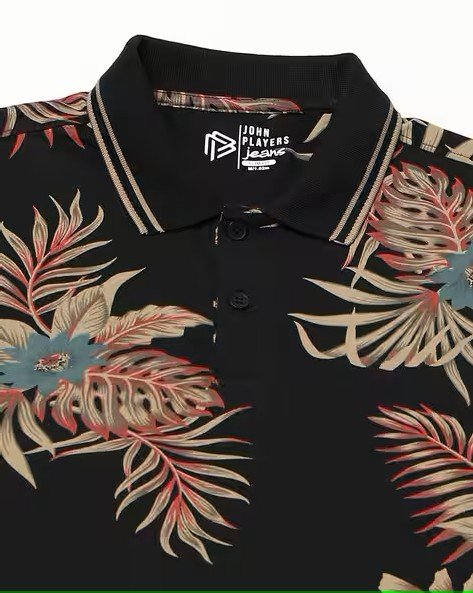 Men Tropical Print Slim Fit Cotton Polo T-Shirt