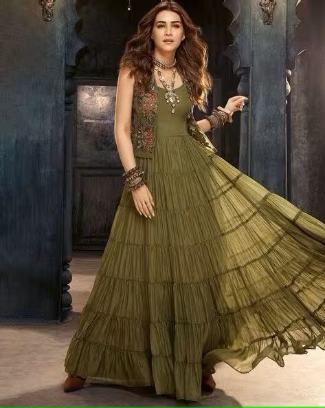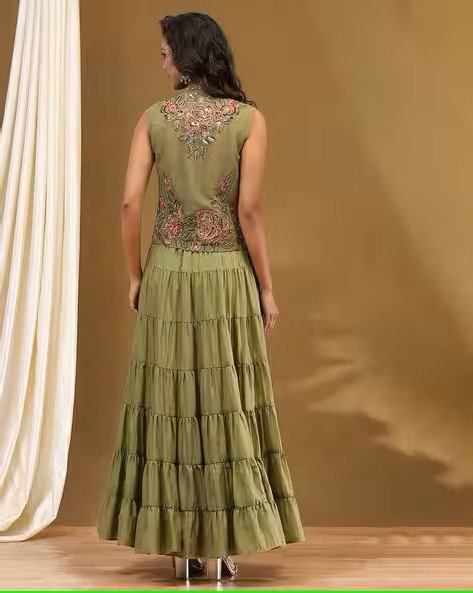 Women Embroidered Tiered Dress with Jacket