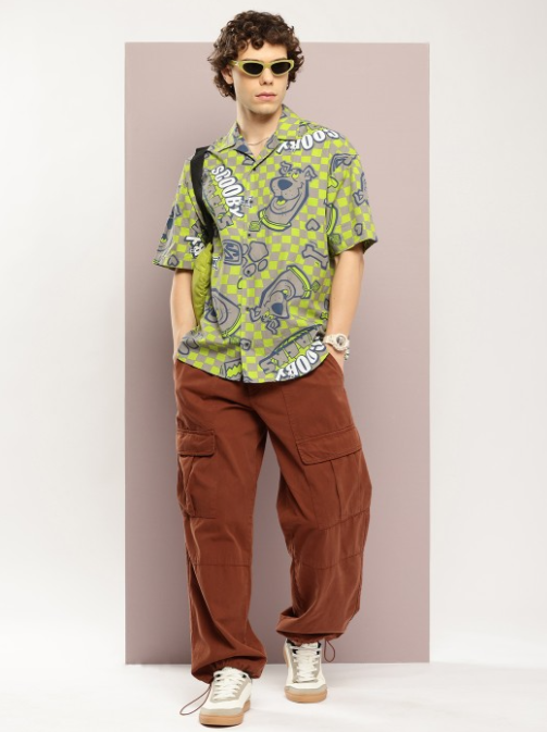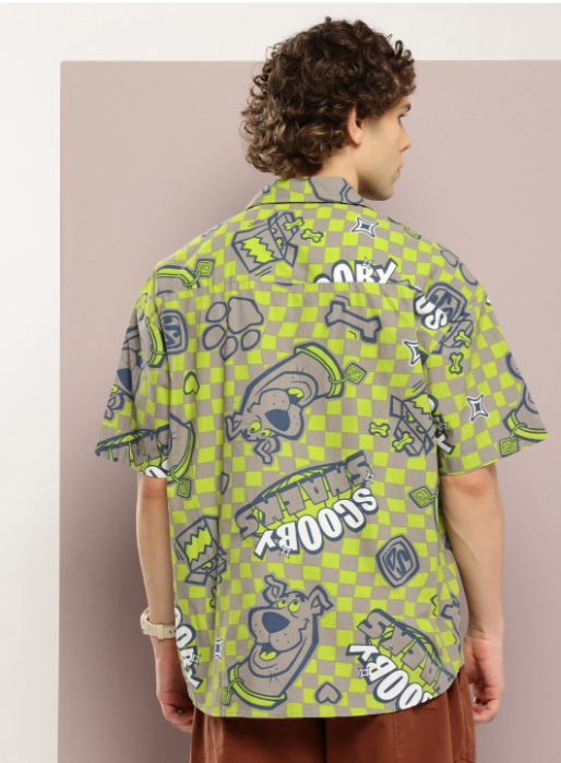 Green, blue & grey Scooby-Doo graphic printed opaque casual shirt, features a Cuban collar, button placket, short drop-shoulder sleeves, and curved hem.