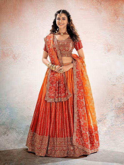 1 Semi-stitched Lehenga, 1 Unstitched Blouse , 1 Dupatta