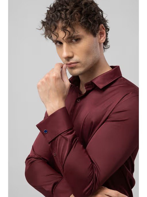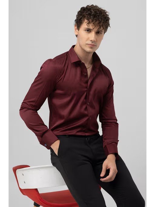 This formal shirt ensures delicate balance while choosing fit and plain pattern that works best for you. This maroon color satin cotton blend shirt when paired up with pants, give you a professional fashion look and can add a fresh essence to your outfit.
