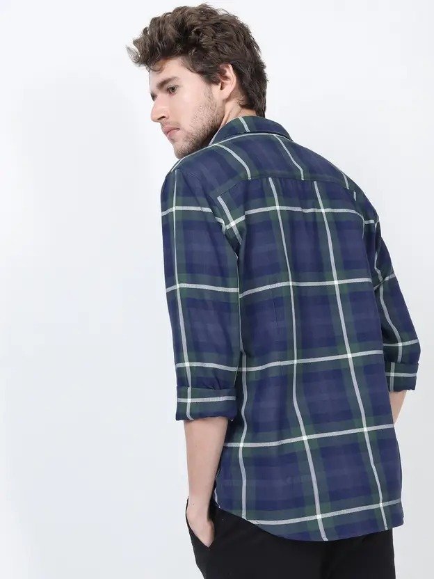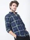 Men Slim Fit Checkered Cut Away Collar Casual Shirt