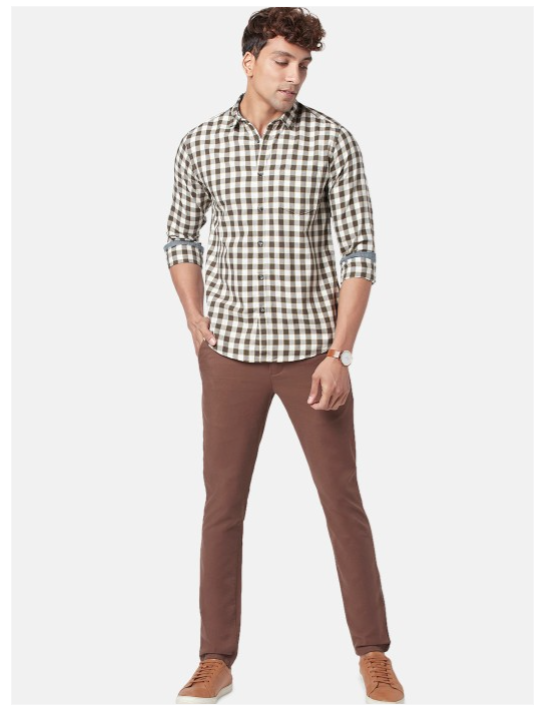 Gingham checked opaque Casual shirt ,has a spread collar, button placket, 1 patch pocket, long regular sleeves, curved hem