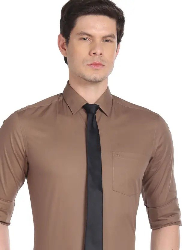 Men Slim Fit Solid Spread Collar Formal Shirt