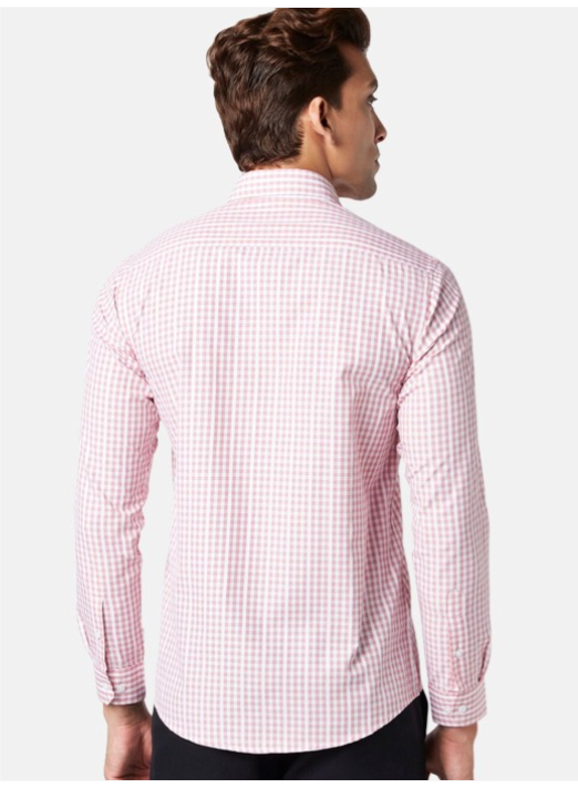 Red other checks checked opaque Formal shirt ,has a spread collar, button placket, 1 patch pocket, long regular sleeves, curved hem
