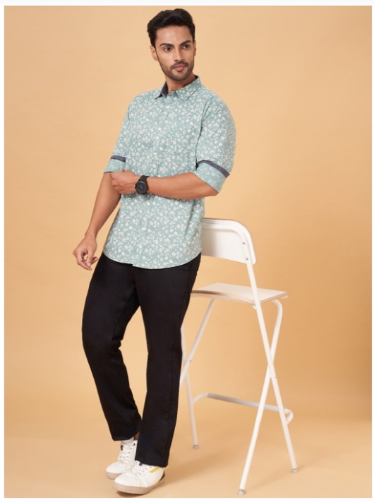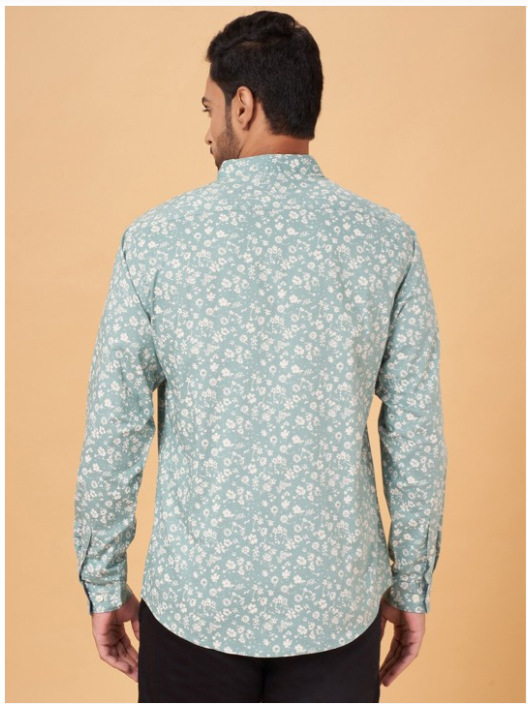 Green floral printed opaque Casual shirt ,has a spread collar, button placket, 1 pocket, long regular sleeves, curved hem