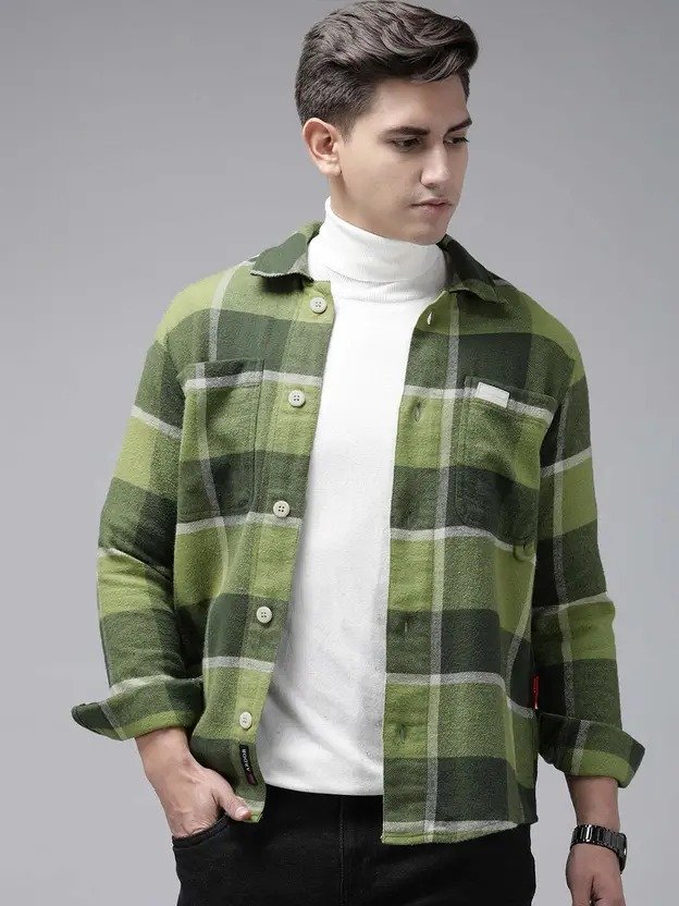 Men Slim Fit Checkered Spread Collar Casual Shirt