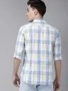 Men Slim Fit Checkered Button Down Collar Casual Shirt