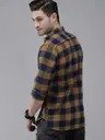 Men Slim Fit Checkered Button Down Collar Casual Shirt