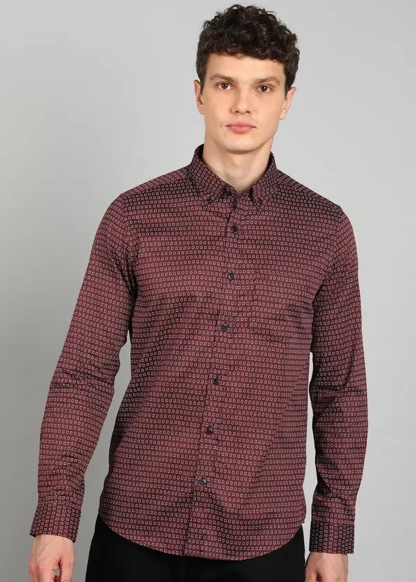Killer Mens Maroon V Pocket Printed Full Sleeve Casual Shirt