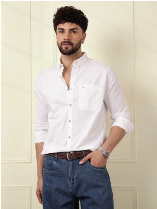 Expand your collection of casual staples with this cool shirt. This white piece can be teamed with distressed denims and canvas shoes when you're grabbing lunch with the guys.