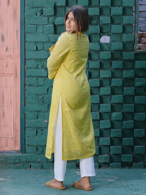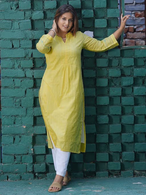 Lemon Yellow Embroidered Cotton Kurta