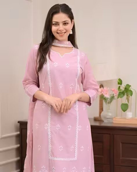 Women Floral Print Straight Kurta with Pants & Dupatta Set