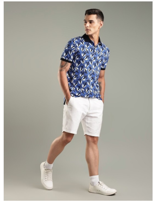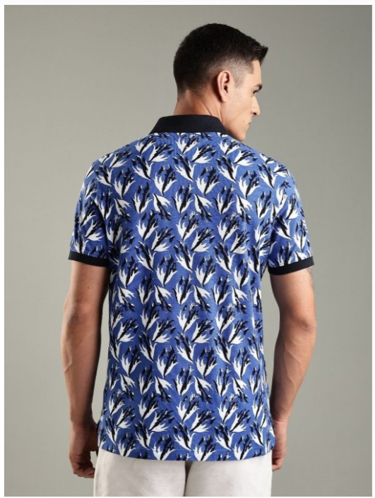 Men Floral Printed Polo Collar Cotton T-shirt