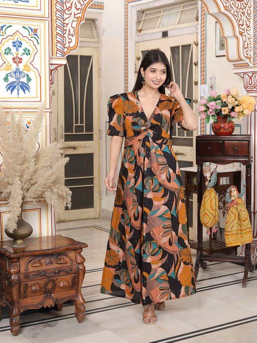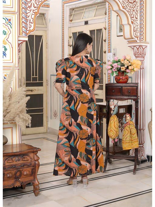 Enhance your style this season with this Pure Cotton Black Puff Sleeve Floral Printed Butterfly Maxi Dress from Doriyaan. Crafted from breathable fabric, it features an elegant puff sleeves and v-neck design and offers exceptional comfort. Pair it with heels and minimal jewelry for a chic appearance.