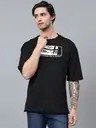 Men Printed Round Neck Pure Cotton Black T-Shirt
