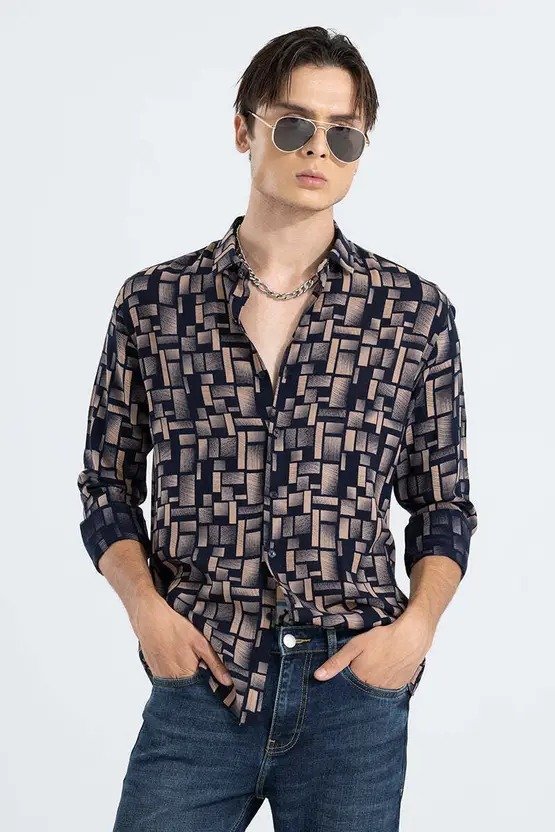 Men Slim Fit Printed Spread Collar Casual Shirt