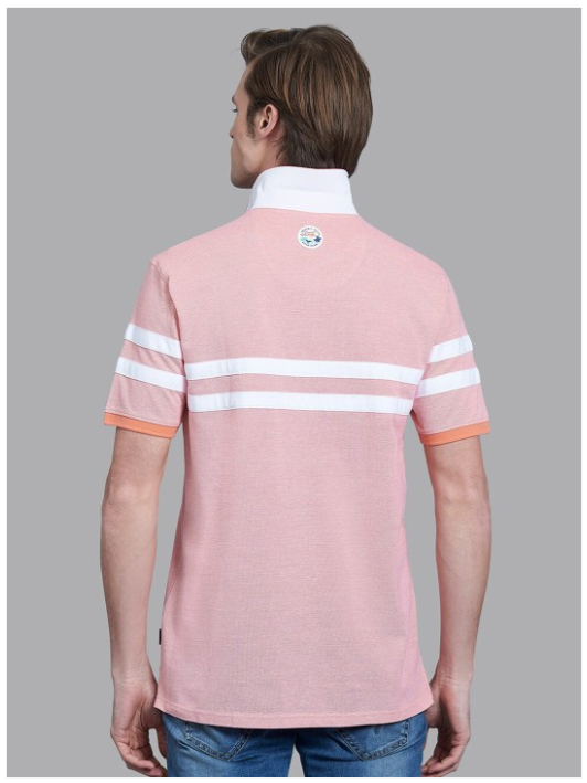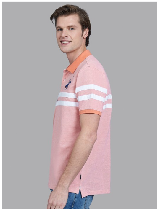 Men Coral & White Striped Polo Collar T-shirt
