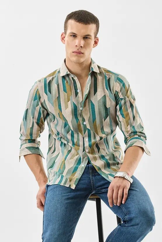 Men Slim Fit Printed Slim Collar Casual Shirt