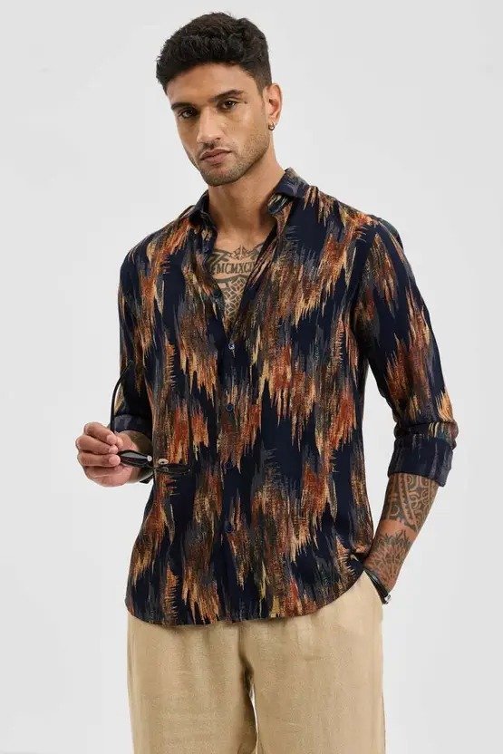 Men Slim Fit Printed Spread Collar Casual Shirt