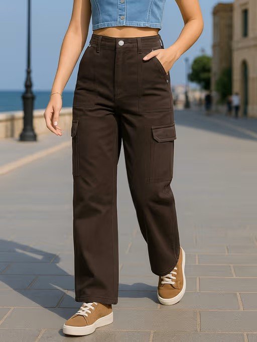 Add a touch of utility-inspired style to your wardrobe with these Women's Brown Straight Fit Cargo Jeans. Pair them with a tucked-in tank top and sandals for a laid-back summer look.