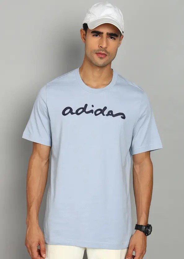 Men Embroidered Round Neck Cotton Blend Light Blue T-Shirt