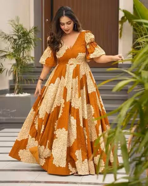 Women Floral Print Gown Dress