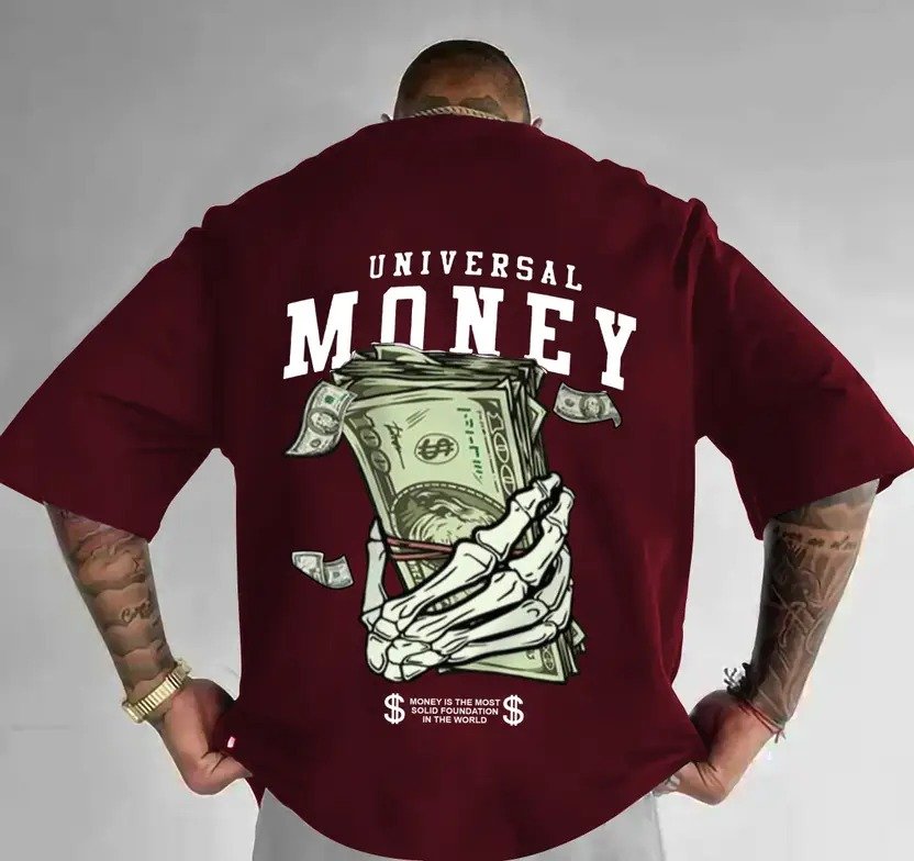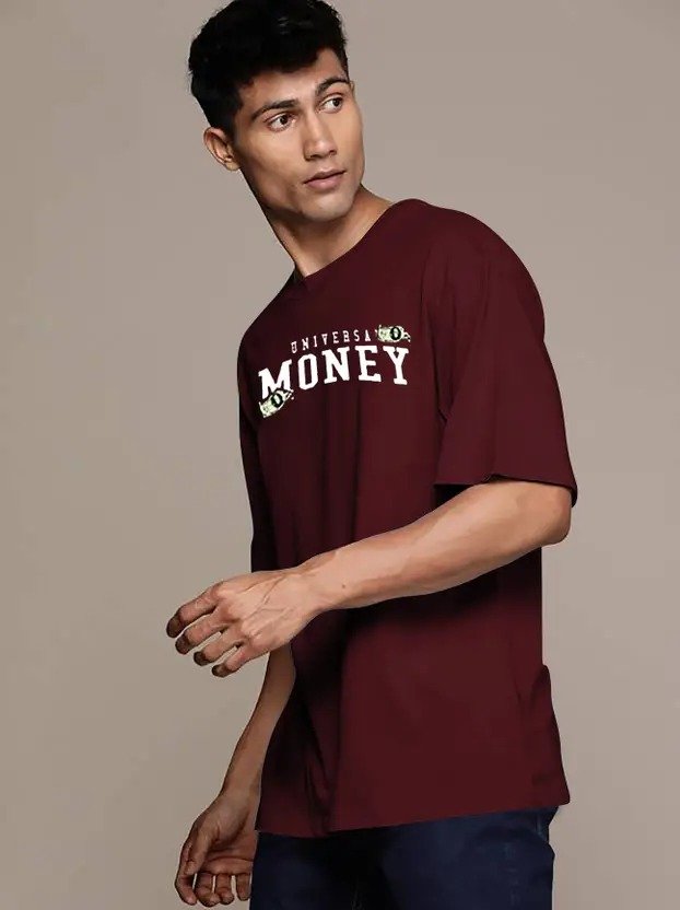 Men Printed Round Neck Cotton Blend Maroon T-Shirt