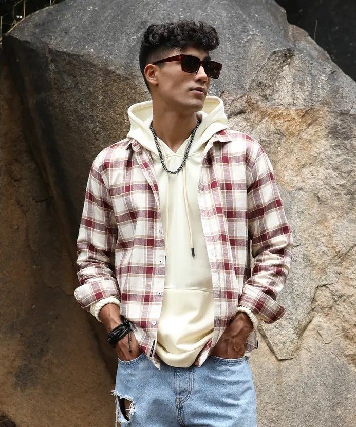 Men Regular Fit Checkered Spread Collar Casual Shirt