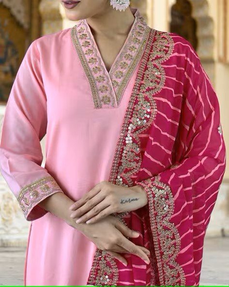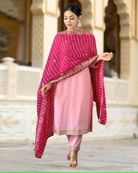 - This elegant purple ensemble features a beautifully embroidered straight viscose kurta, complemented by matching viscose pants for a refined look. A flowing crepe silk dupatta adds a touch of luxury and grace. Perfect for festive occasions or casual elegance, this outfit blends comfort and sophistication effortlessly. Timeless and stylish!