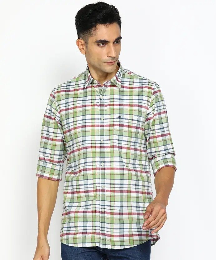 Men Slim Fit Checkered Spread Collar Casual Shirt