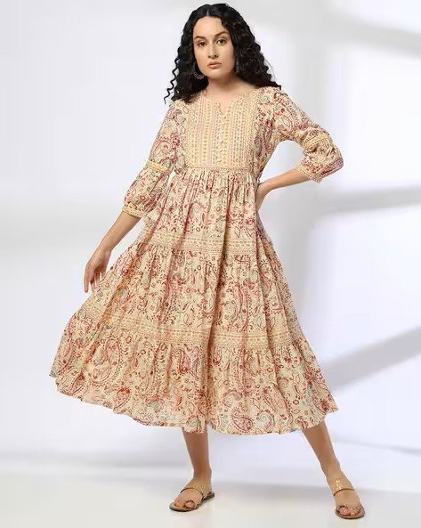 Women Paisley Print Cotton Tiered Dress