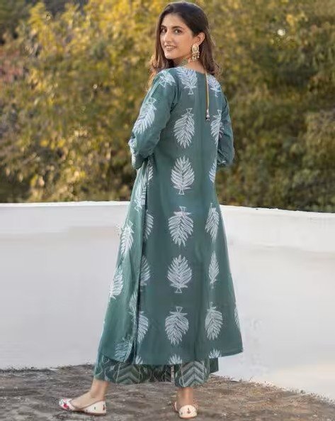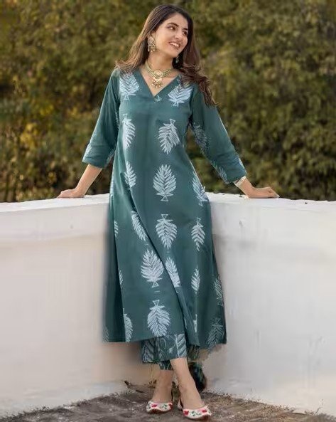 Women Leaf Print Straight Kurta Set