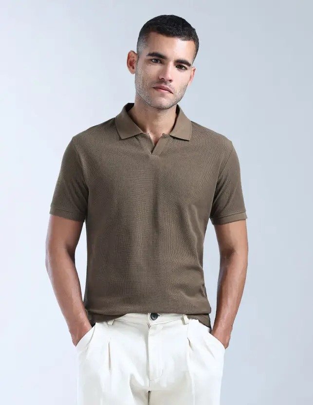 Men Self Design Polo Neck Cotton Blend Brown T-Shirt