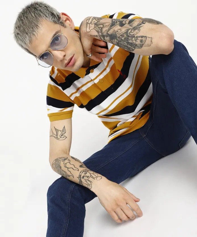 Men Striped Polo Neck Pure Cotton Multicolor T-Shirt