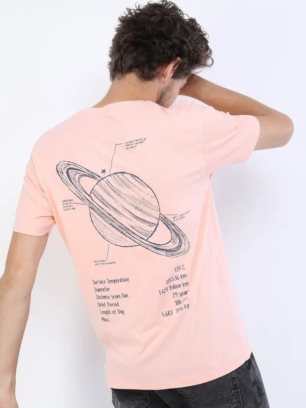 Men Printed Round Neck Pure Cotton Pink T-Shirt