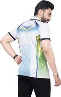 Men Sporty Mandarin Collar Polyester White T-Shirt