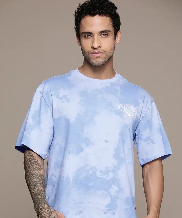 Men Printed Round Neck Pure Cotton Blue T-Shirt