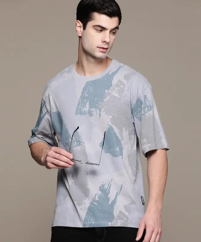 Men Printed Round Neck Pure Cotton Grey T-Shirt