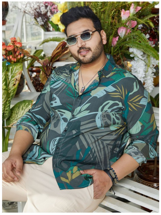 Green graphic printed opaque Casual shirt ,has a spread collar, button placket, na pocket, long regular sleeves, curved hem