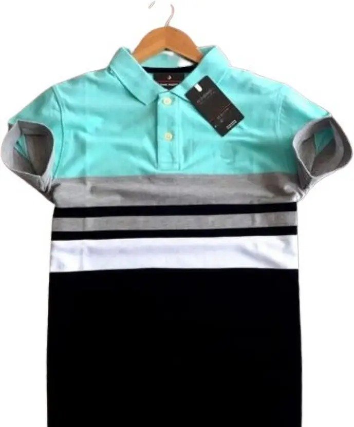 Men Striped Polo Neck Pure Cotton Multicolor T-Shirt
